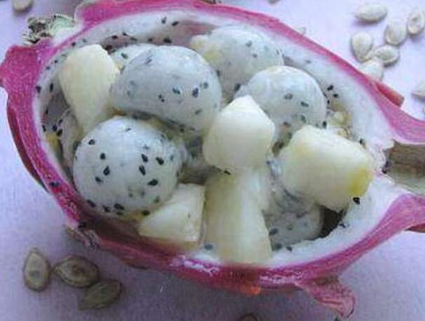 - Wash the dragon fruit, cut it in half, and use a ball scoop to scoop it into balls