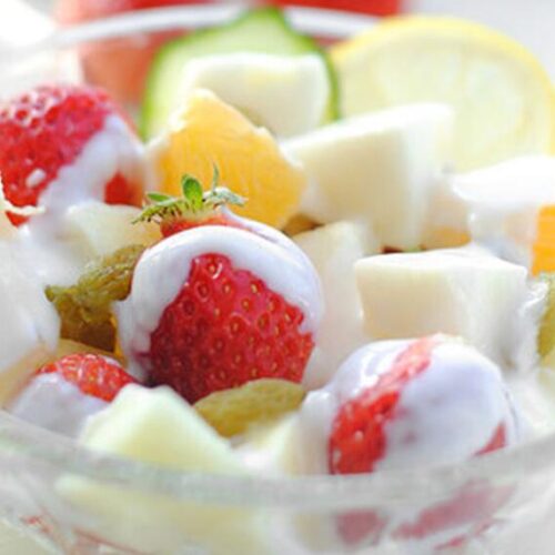 I picked some fresh strawberries over the weekend and made this strawberry yogurt salad when I got home. It’s especially delicious when served chilled in the summer.