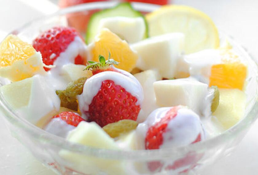- Chop orange into pieces and mix with strawberries, apples, and raisins