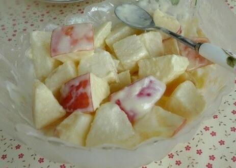• Wash the apples and prepare the salad dressing, Core and cut apples into pieces